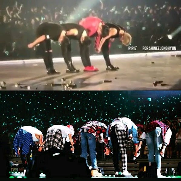 Special Lucifer performance in #SHINeeTokyoDomeDay2. We have little SHINee dancing on the stage. During the introduction of the young SHINee dancers, starting with JongHyun, and then TaeMin, MinHo and Key, they hugged the young dancer that supposed to be Onew's dancing partner. The boy was okay and smiling, but we know it's JongHyun and the rest of SHINee that can't hold their feelings. Maybe that hug was to prevent themselves from crying because the boy make them thinking about Onew absence.